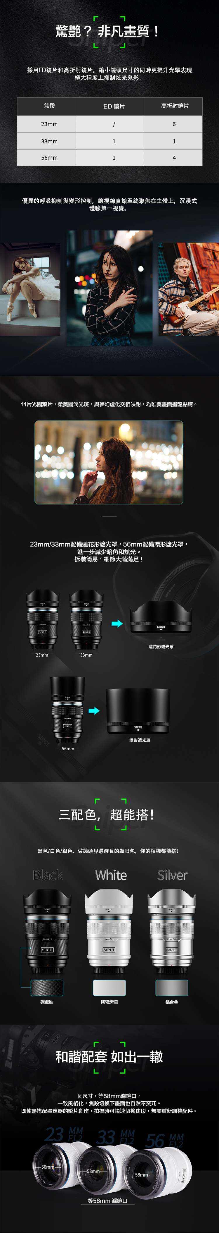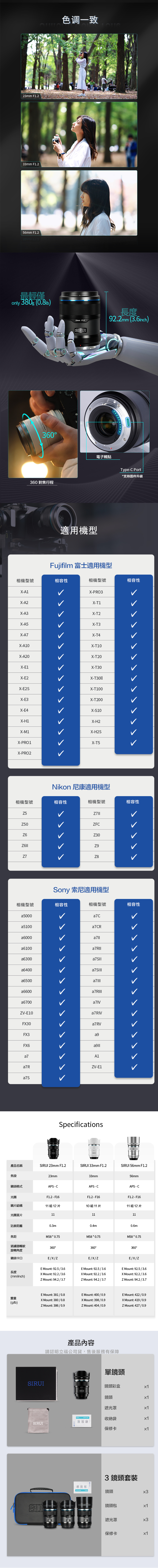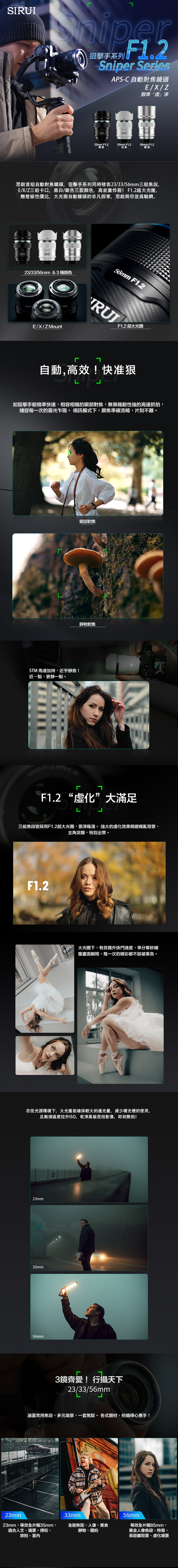 SIRUI思銳 23mm/33mm/56mm 狙擊系列 F1.2 APS-C 自動對焦鏡頭組