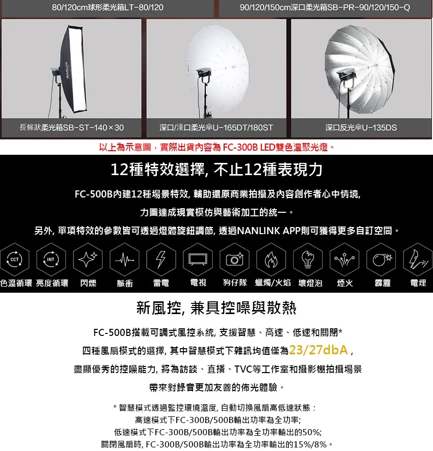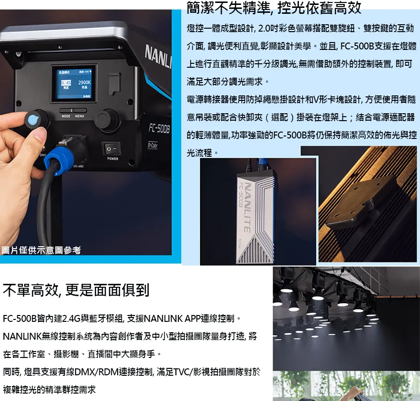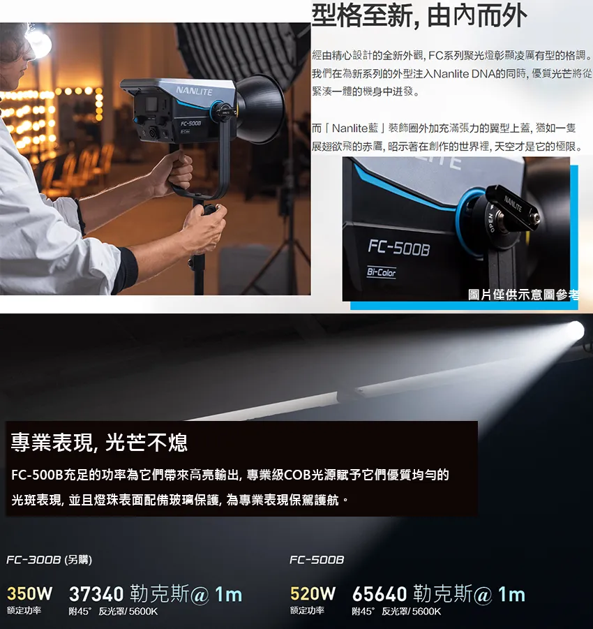 公司貨 Nanlite 南光 FC-500B 雙色溫 500W LED 聚光燈 攝影燈 高亮度 影視持續燈