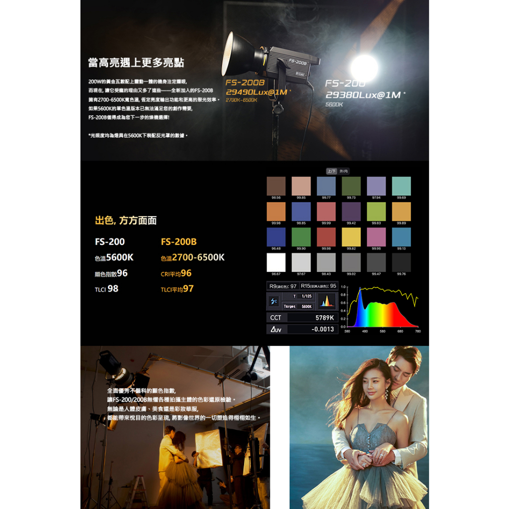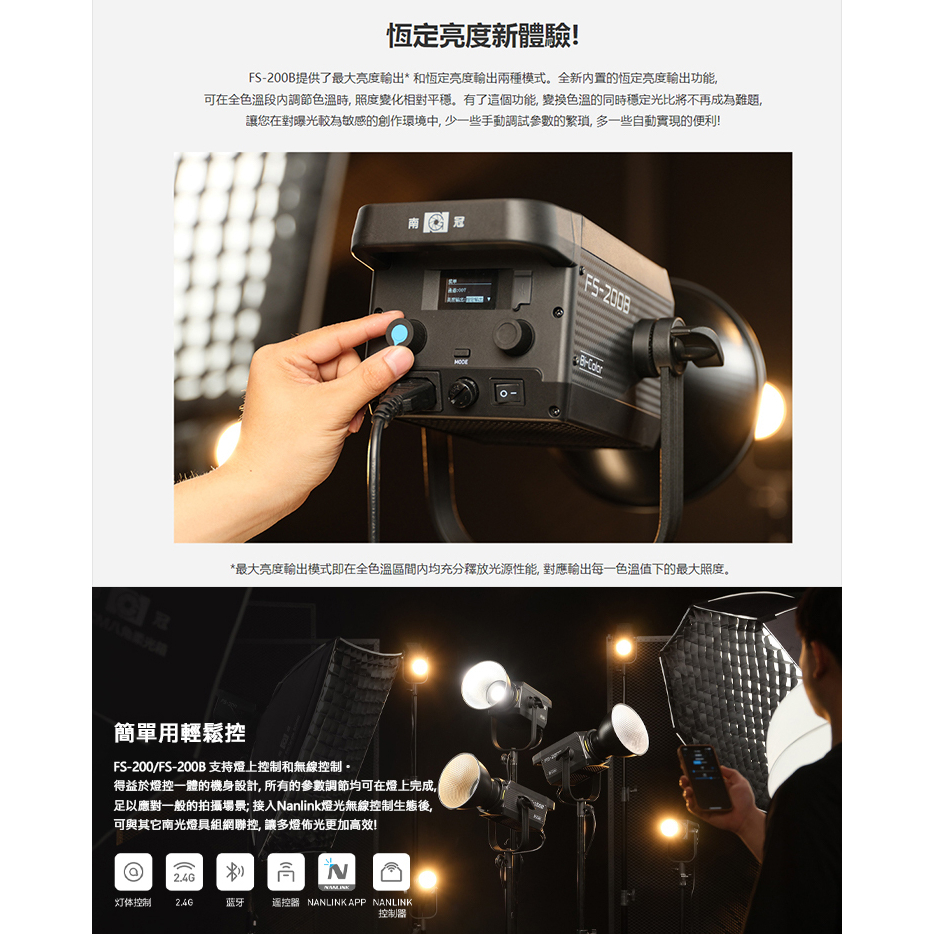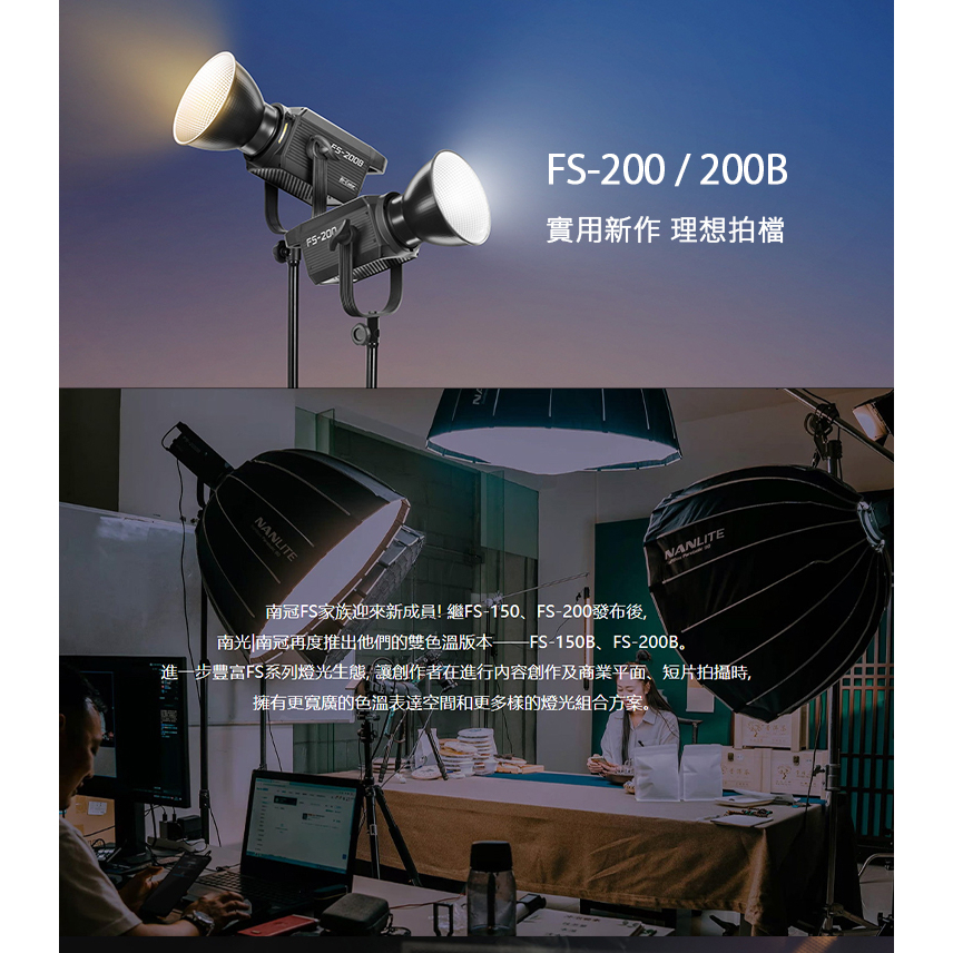 公司貨 Nanlite 南光 FS-200/200B 白光/雙色溫 200W LED 聚光燈 攝影燈 高亮度 影視持續燈