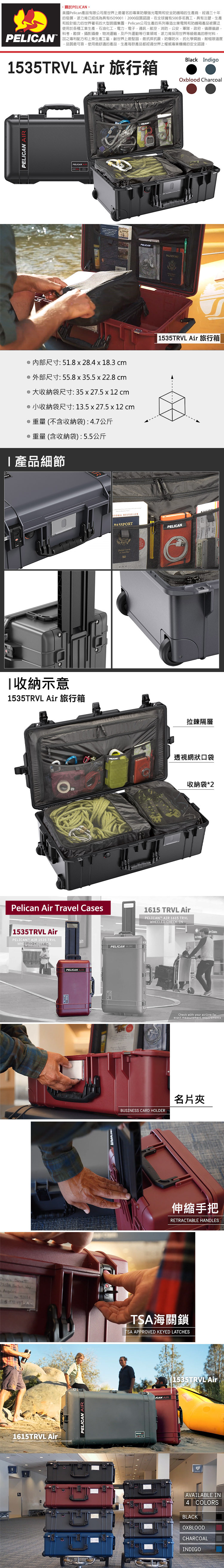 客訂 公司貨 PELICAN 派力肯 1535Air TRVL 輪座拉桿超輕氣密旅行箱 超輕量 含收納袋 防水氣密箱