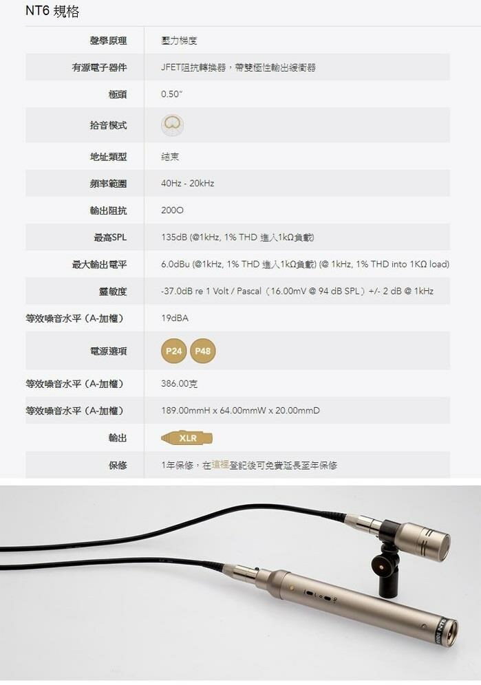 羅德 Rode NT6 1/2吋 電容式麥克風