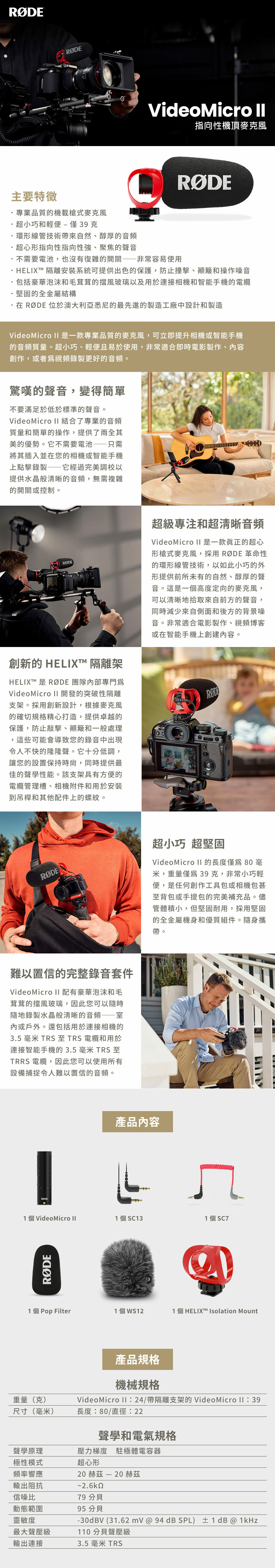 公司貨 羅德 RODE VideoMicro II 指向性機頂麥克風 現場收音 機頂麥克風 相機 RØDE